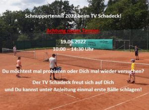 Am 03.07.2021 fand wieder einen Schnuppertennistag statt, eine gelungene Veranstaltung, wo erneut neue Mitglieder gewonnen werden konnten. Diese konnten direkt im Anschluss am Jugendtraining samstags teilnehmen.